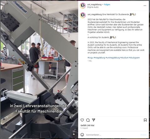 The "StudierendenWerkstatt" is available to all students at all stages of their studies, giving them space to develop their own ideas and dreams and turn them into reality, as well as to work on projects from the practice-oriented modules. Trained student staff and the "StudierendenWerkstatt" management are available to answer questions and provide support to anyone interested.